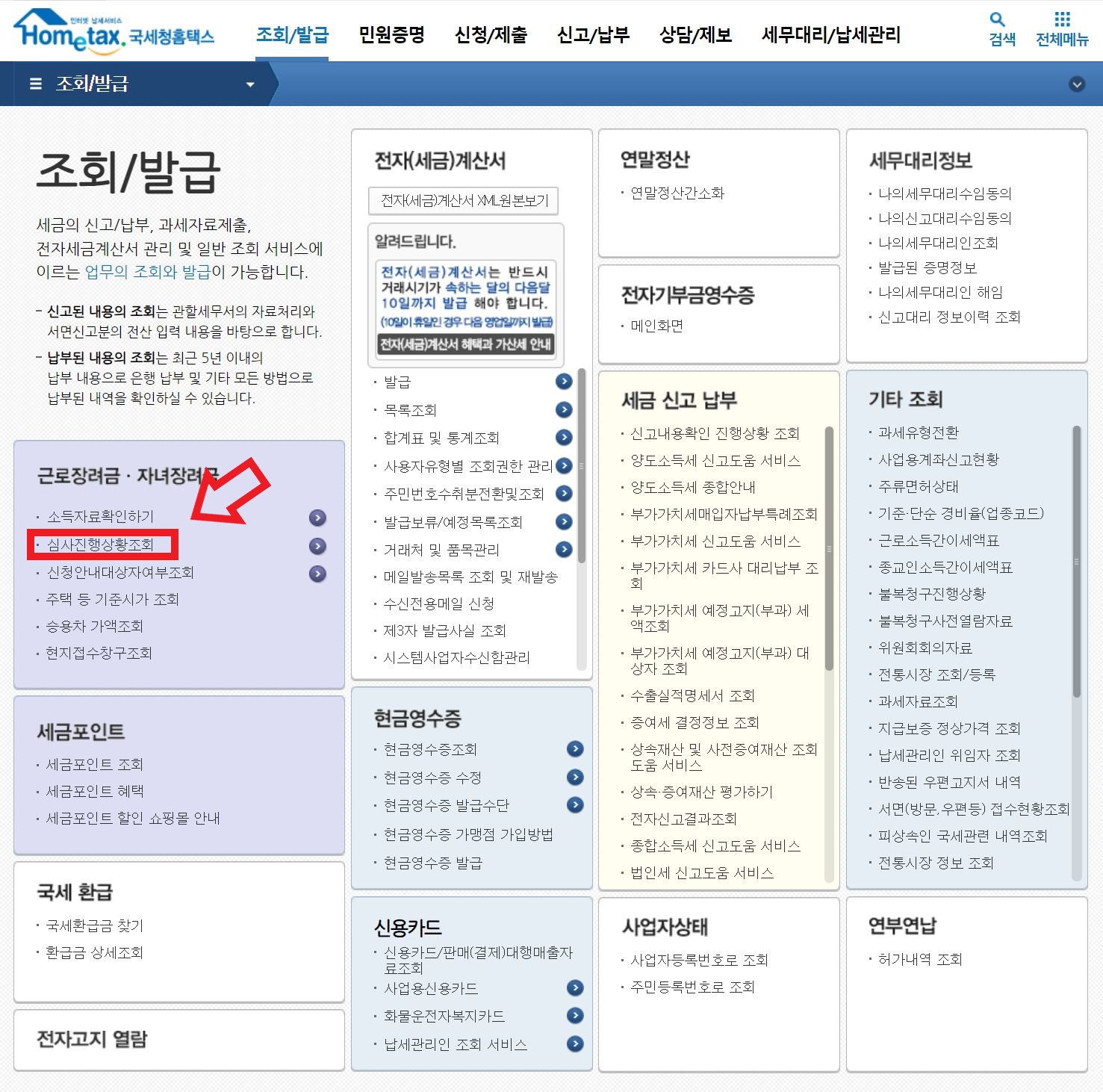 홈택스나 손택스 로그인 후 조회발급 - 근로장려금 - 심사진행상황조회로 들어가시면 됩니다.